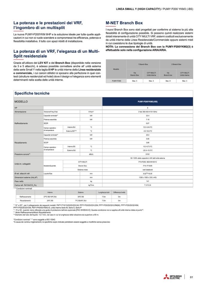 La nuova PUMY-P200YKM 8HP e la soluzione ideale per tutte quelle appli-