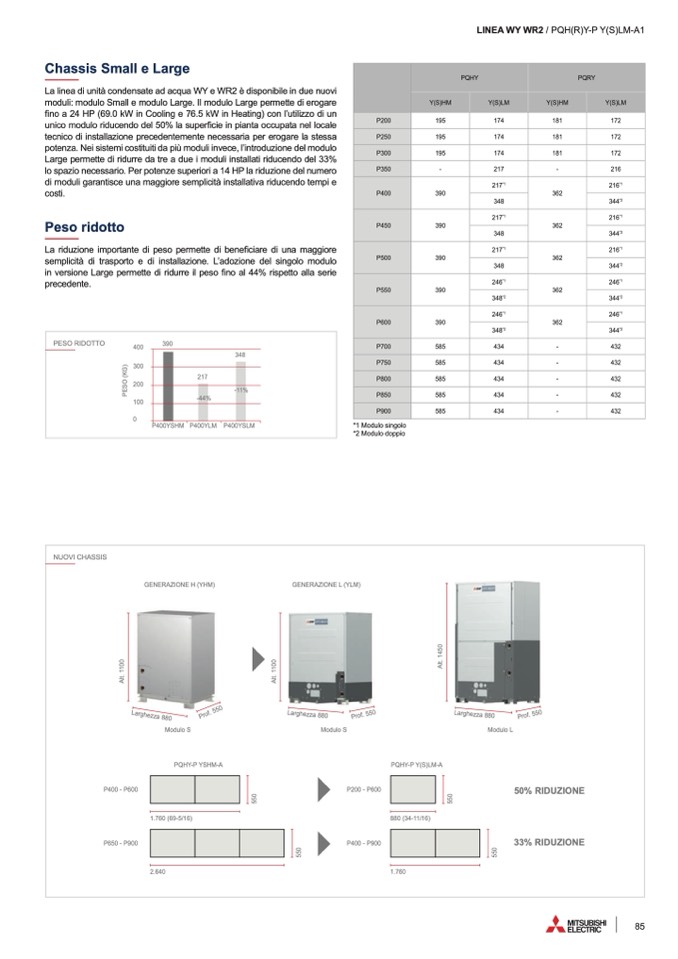 fino a 24 HP (69.0 kW in Cooling e 76.5 kW in Heating) con l’utilizzo di un