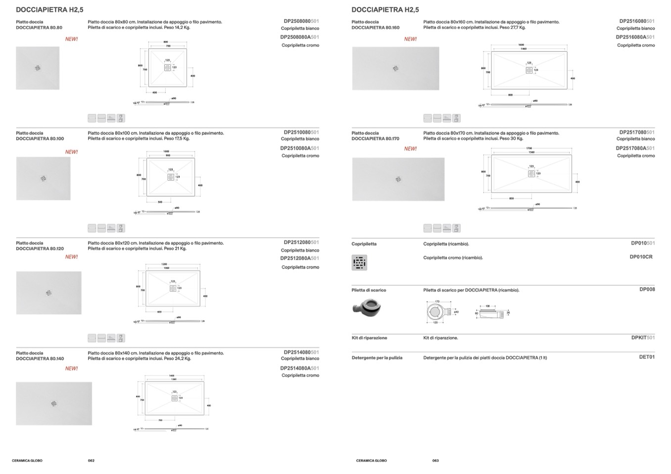 Piletta di scarico e copripiletta inclusi. Peso 21 Kg.
