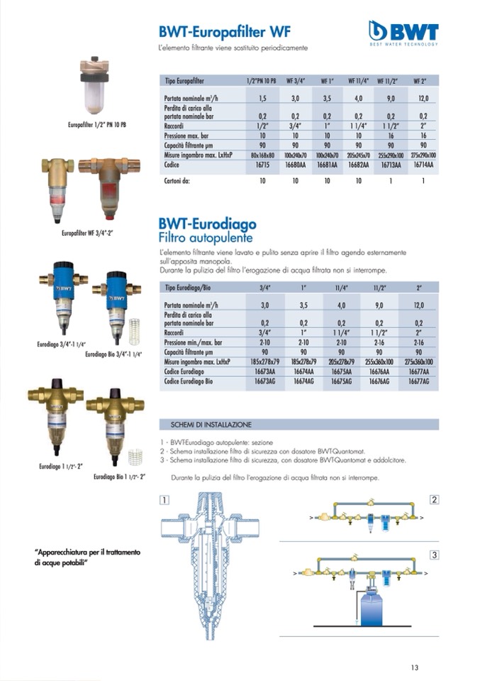 2 - Schema installazione filtro di sicurezza con dosatore BWT-Quantomat.