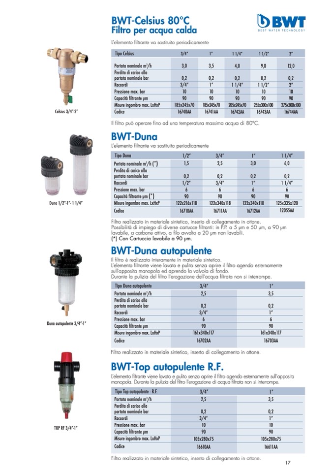 Il filtro può operare fino ad una temperatura massima acqua di 80°C.