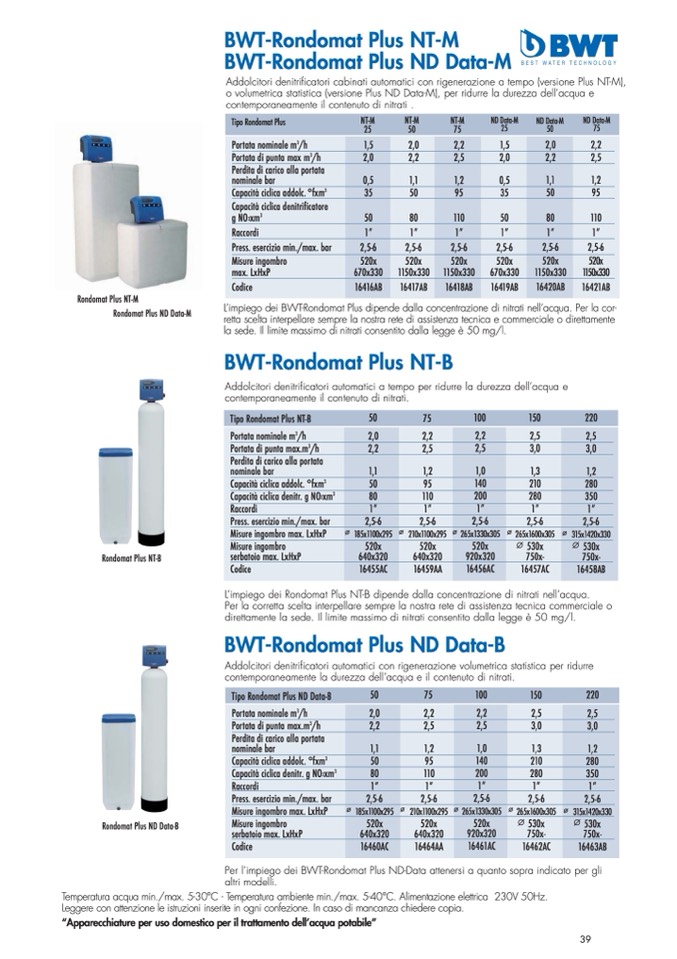 Per l’impiego dei BWT-Rondomat Plus ND-Data attenersi a quanto sopra indicato per gli