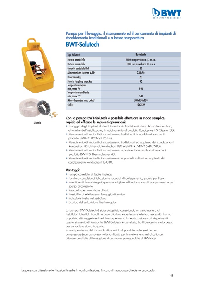 Con la pompa BWT-Solutech è possibile effettuare in modo semplice,