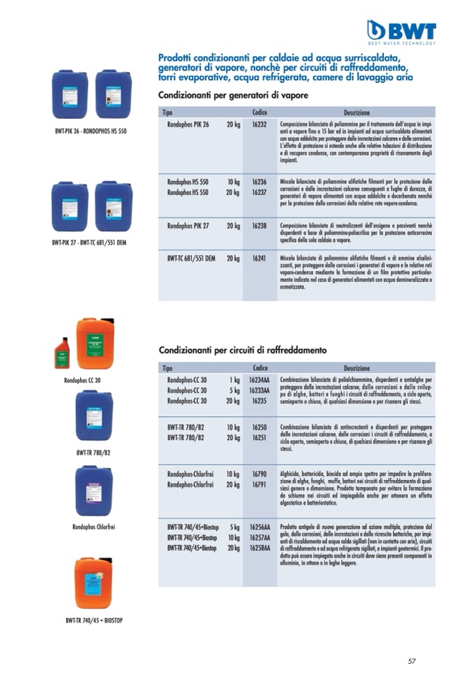 po di alghe, batteri e funghi i circuiti di raffreddamento, a ciclo aperto,
