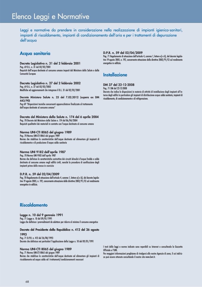 I testi delle leggi e norme indicate sono reperibili su Internet o consultando la Gazzetta