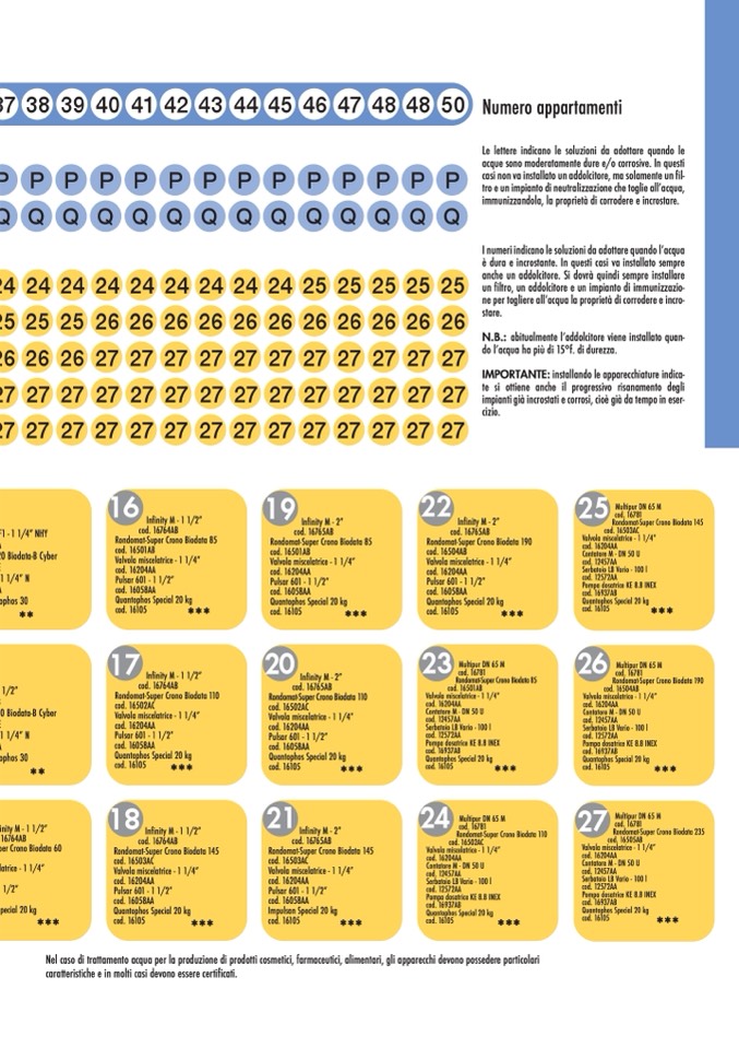 I numeri indicano le soluzioni da adottare quando l’acqua
