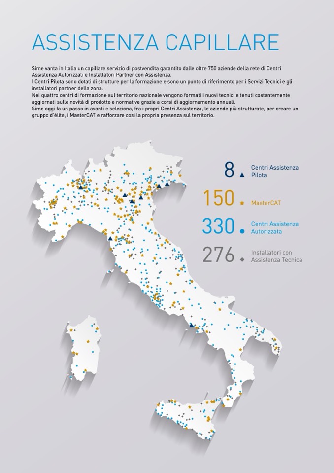 Sime vanta in Italia un capillare servizio di postvendita garantito dalle oltre 750 aziende della rete di Centri