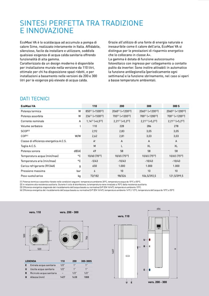 [1] Potenza termica e assorbita rilevatRe nelle condizioni seguenti: temperatura ambiente 20°C, temperatura acqua da 15°C a 55°C.