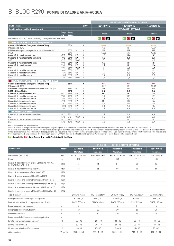 SPECIFICHE TECNICHE UNITÀ ESTERNA