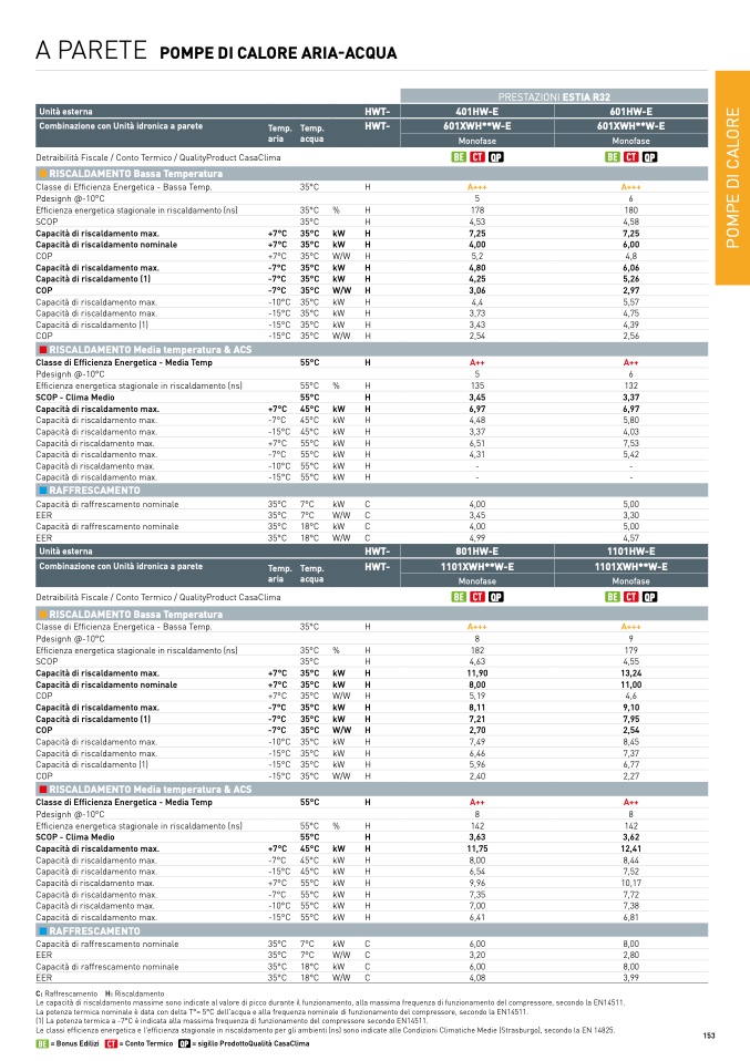 (1) La potenza termica a -7°C è indicata alla massima frequenza di funzionamento del compressore secondo EN14511