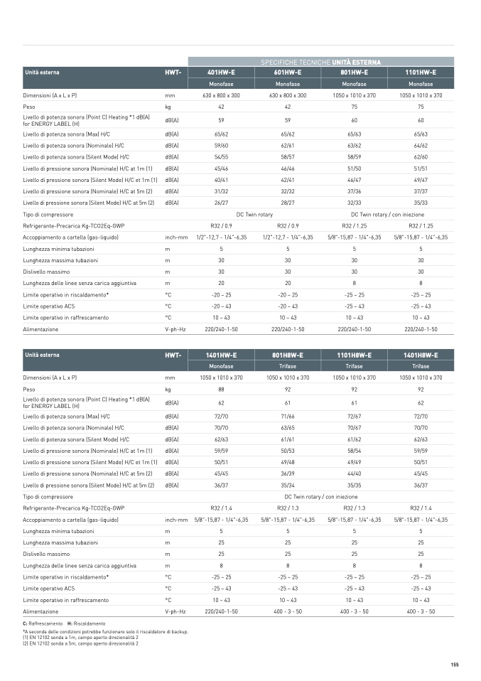 SPECIFICHE TECNICHE UNITÀ ESTERNA
