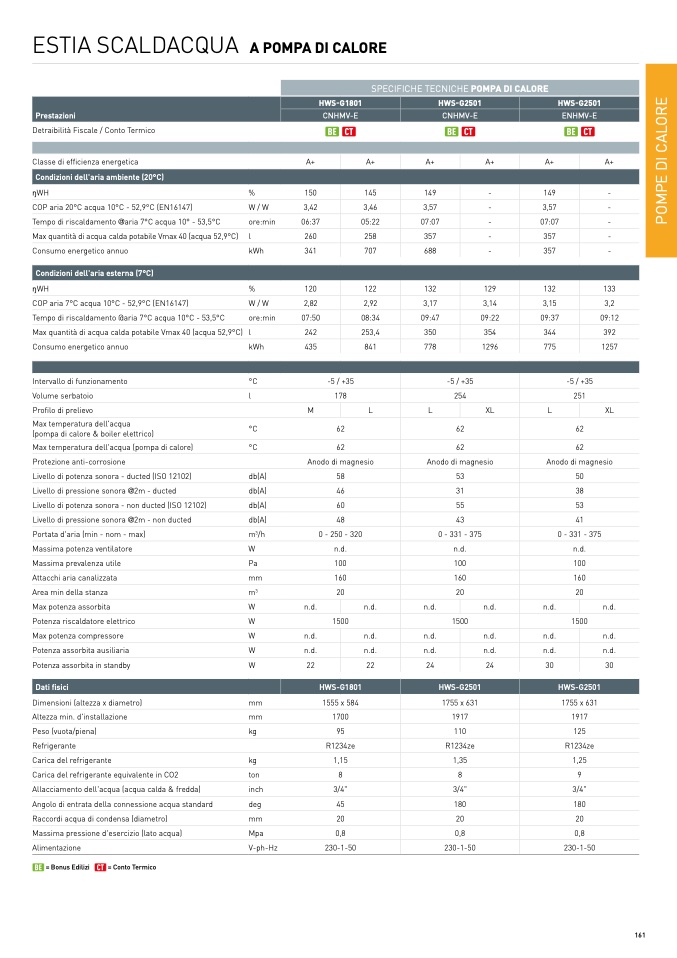 SPECIFICHE TECNICHE POMPA DI CALOR