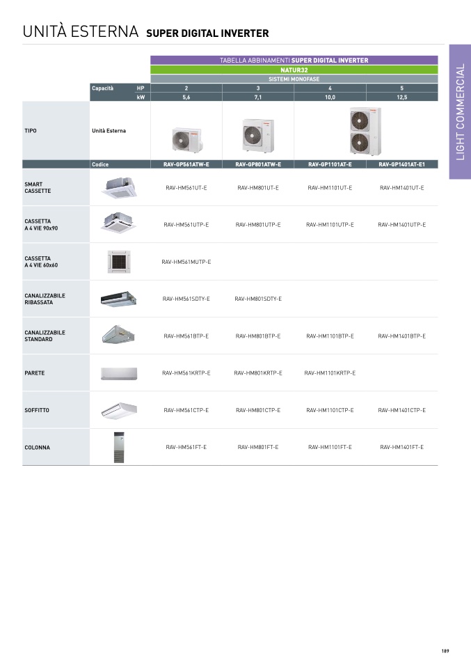 TABELLA ABBINAMENTI SUPER DIGITAL INVERTER