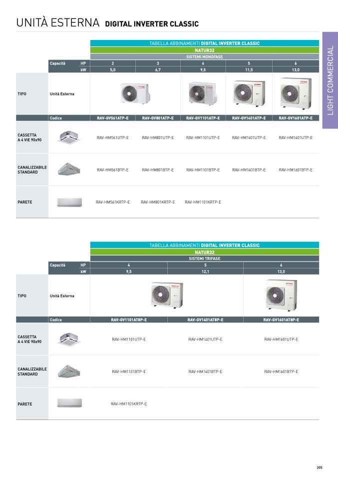 TABELLA ABBINAMENTI DIGITAL INVERTER CLASSI