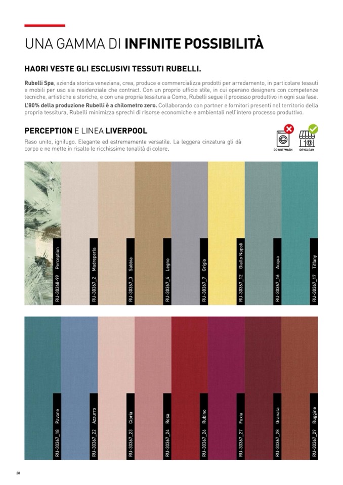 Raso unito, ignifugo. Elegante ed estremamente versatile. La leggera cinzatura gli d