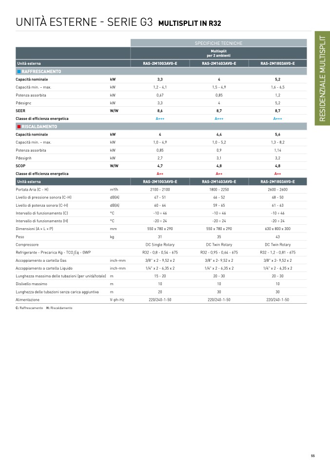 Lunghezza massima delle tubazioni (per unità/totale) m