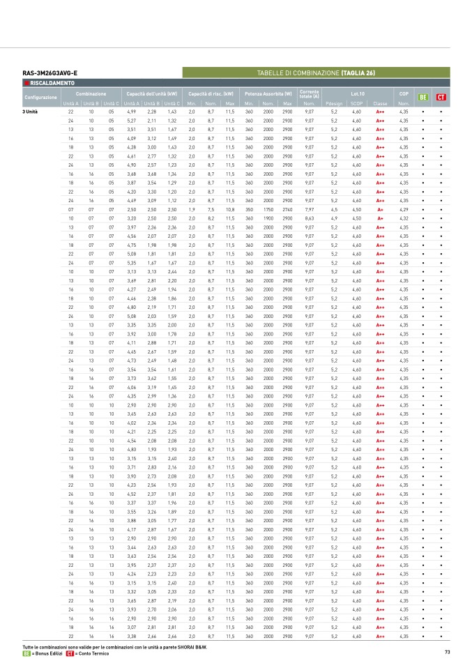 TABELLE DI COMBINAZIONE (TAGLIA 26