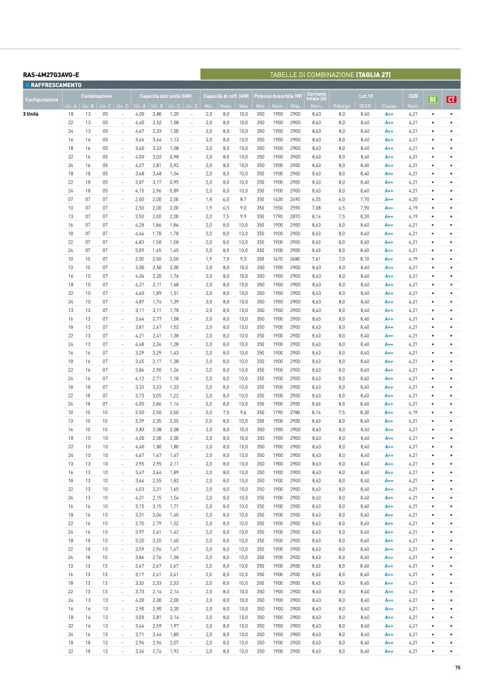 TABELLE DI COMBINAZIONE (TAGLIA 27)