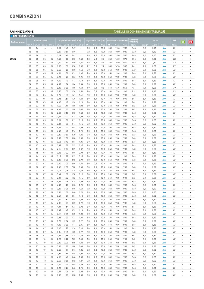 TABELLE DI COMBINAZIONE (TAGLIA 27