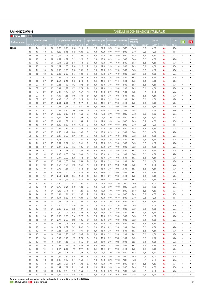 TABELLE DI COMBINAZIONE (TAGLIA 27)