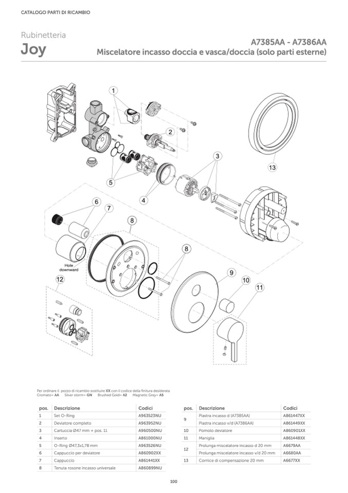 Per ordinare il pezzo di ricambio sostituire XX con il codice della finitura desiderata