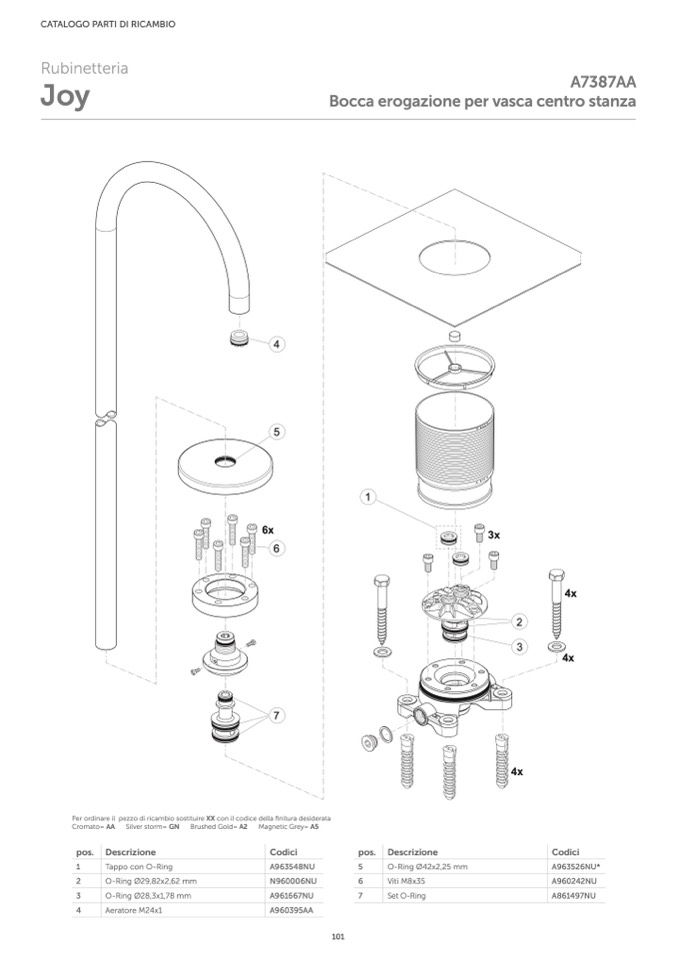 Per ordinare il pezzo di ricambio sostituire XX con il codice della finitura desiderata