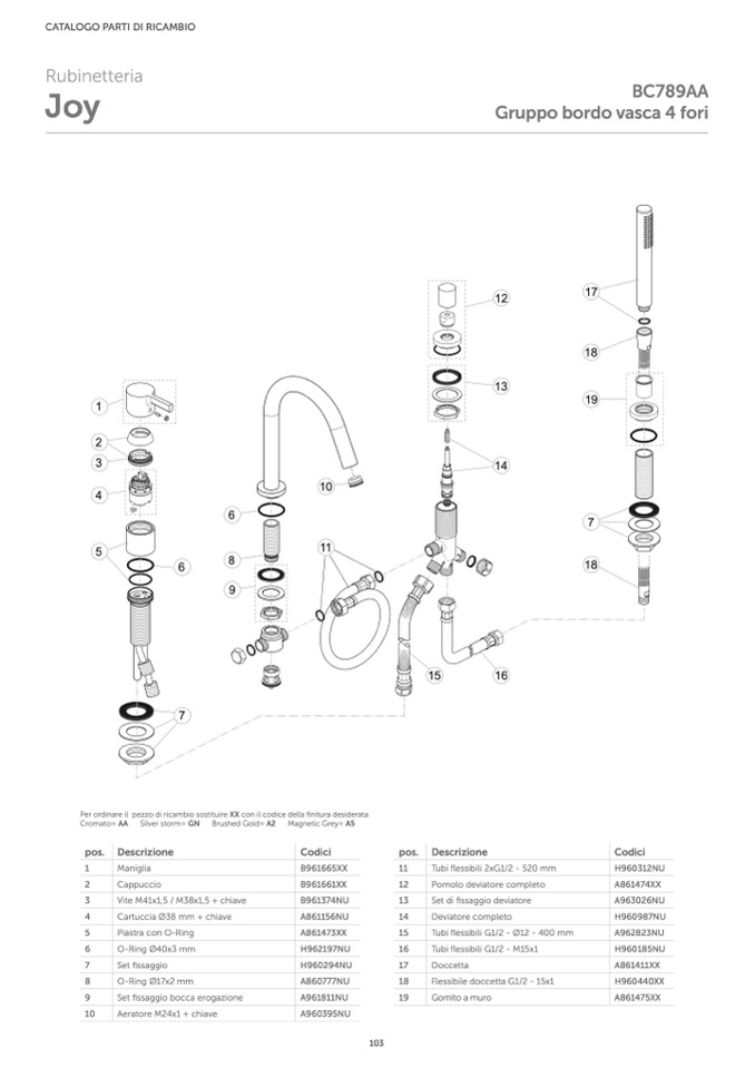 Per ordinare il pezzo di ricambio sostituire XX con il codice della finitura desiderata