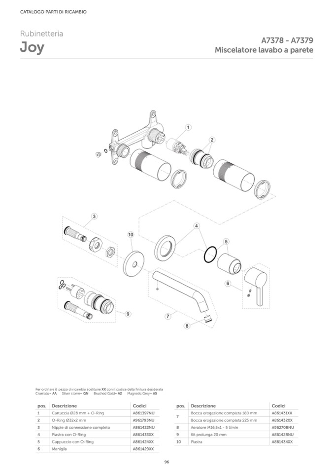 Per ordinare il pezzo di ricambio sostituire XX con il codice della finitura desiderata