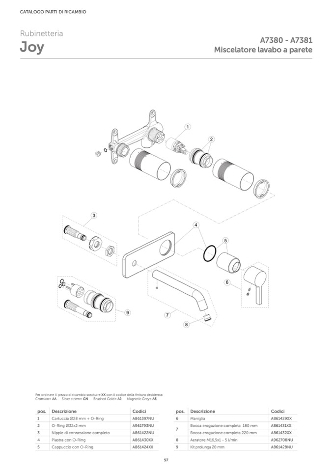 Per ordinare il pezzo di ricambio sostituire XX con il codice della finitura desiderata