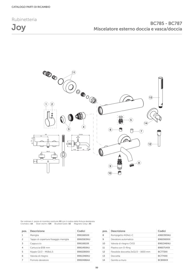 Per ordinare il pezzo di ricambio sostituire XX con il codice della finitura desiderata