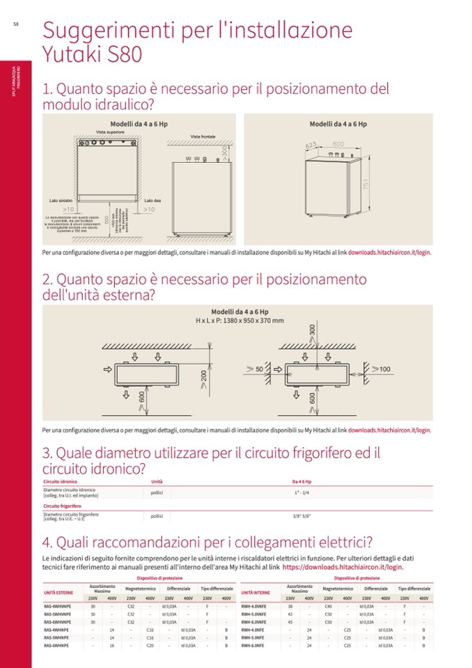 Per una configurazione diversa o per maggiori dettagli, consultare i manuali di installazione disponibili su My Hitachi al link downloads.hitachiaircon.it/login.