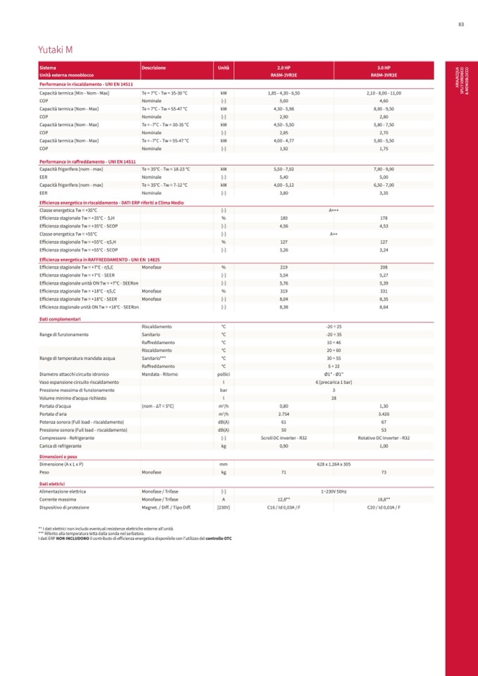 ** I dati elettrici non includo eventuali resistenze elettriche esterne all’unit