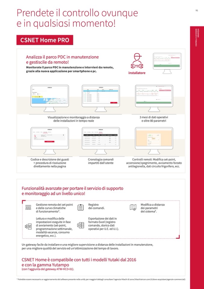 * Potrebbe essere necessario un aggiornamento del software presente nelle unità; per maggiori dettagli consultare l'agenzia Hitachi di zona (hitachiaircon.com/it/dove-acquistare/agenzie-commerciali)
