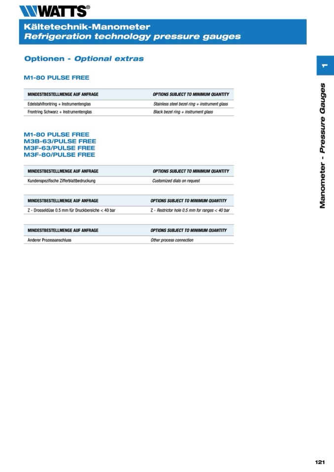 Z - Restrictor hole 0.5 mm for ranges < 40 bar