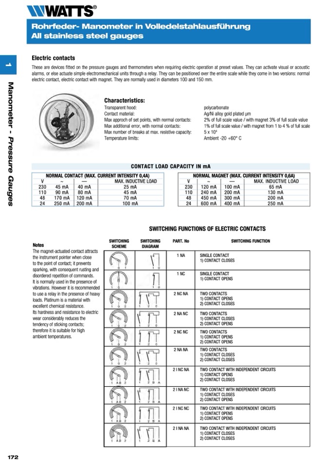 These are devices fitted on the pressure gauges and thermometers when requiring electric operation at preset values. They can activate visual or acoustic