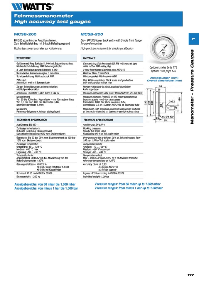 Anzeigebereiche: von 60 mbar bis 1.000 mbar