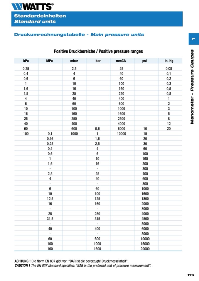 ACHTUNG ! Die Norm EN 837 gibt vor: “BAR ist die bevorzugte Druckmesseinheit”.