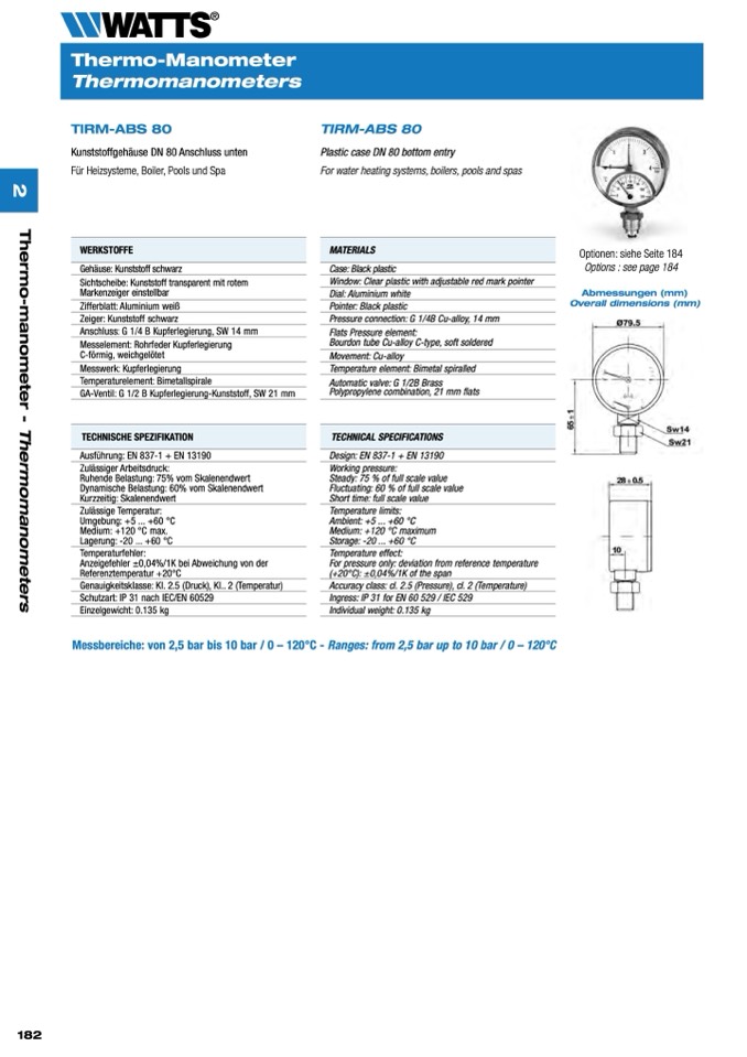 Messbereiche: von 2,5 bar bis 10 bar / 0 – 120°C - Ranges: from 2,5 bar up to 10 bar / 0 – 120°C