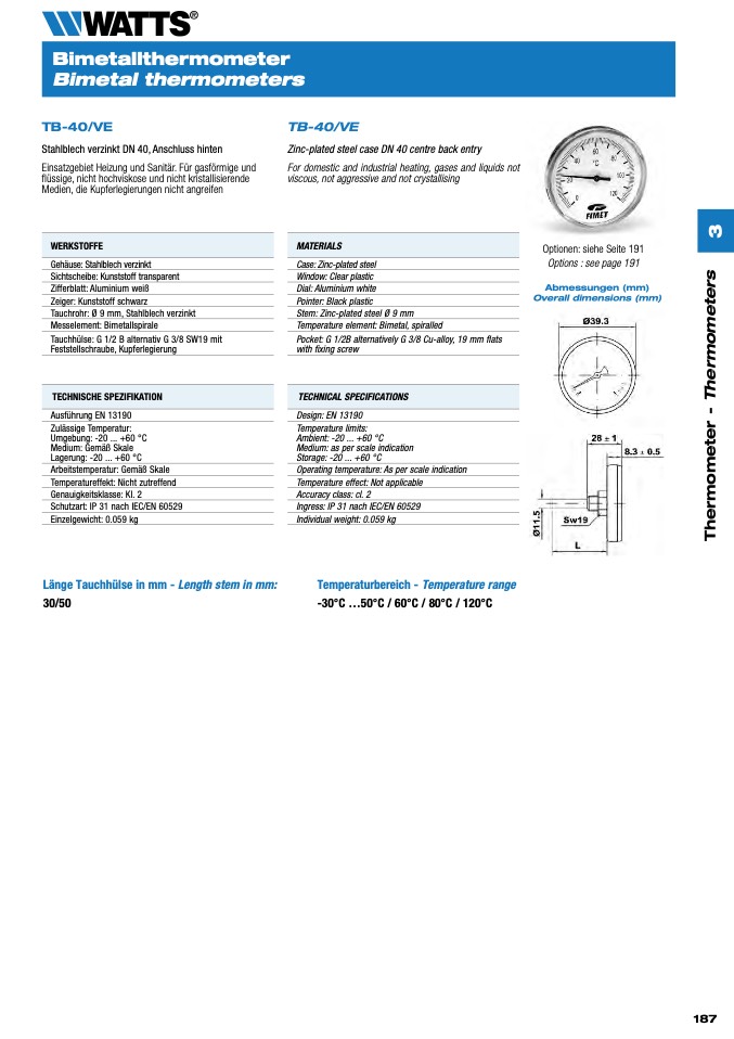 -30°C ...50°C / 60°C / 80°C / 120°C