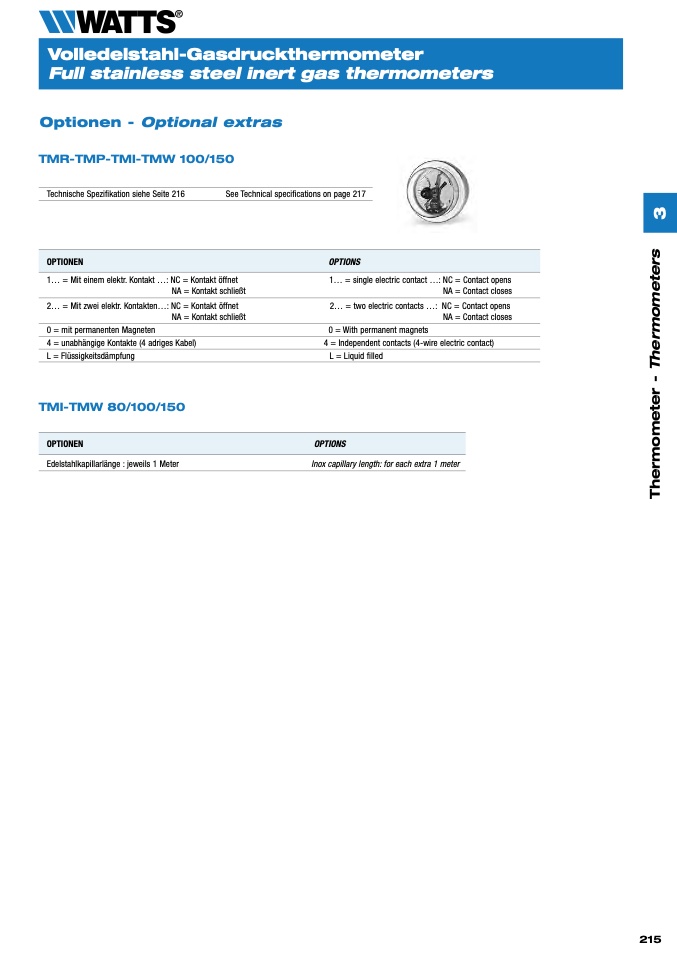 2... = Mit zwei elektr. Kontakten...: NC = Kontakt öffnet