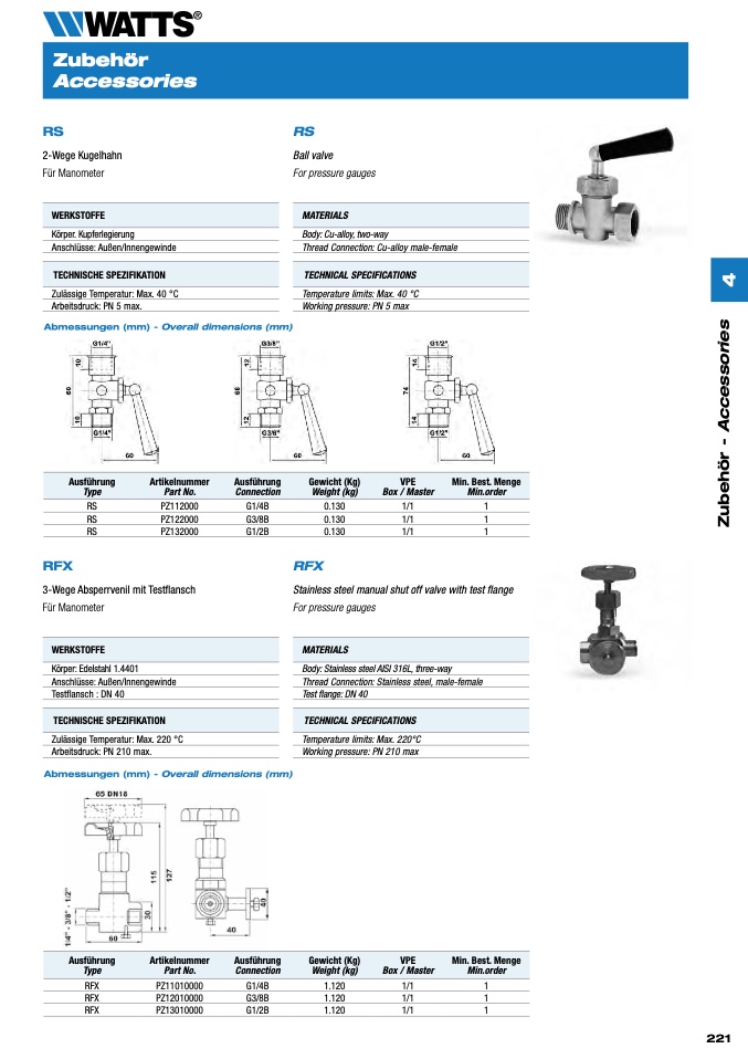 Arbeitsdruck: PN 210 max.