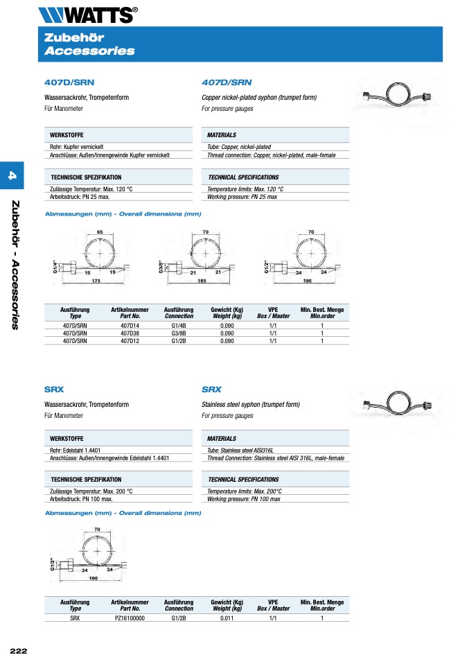 Arbeitsdruck: PN 100 max.