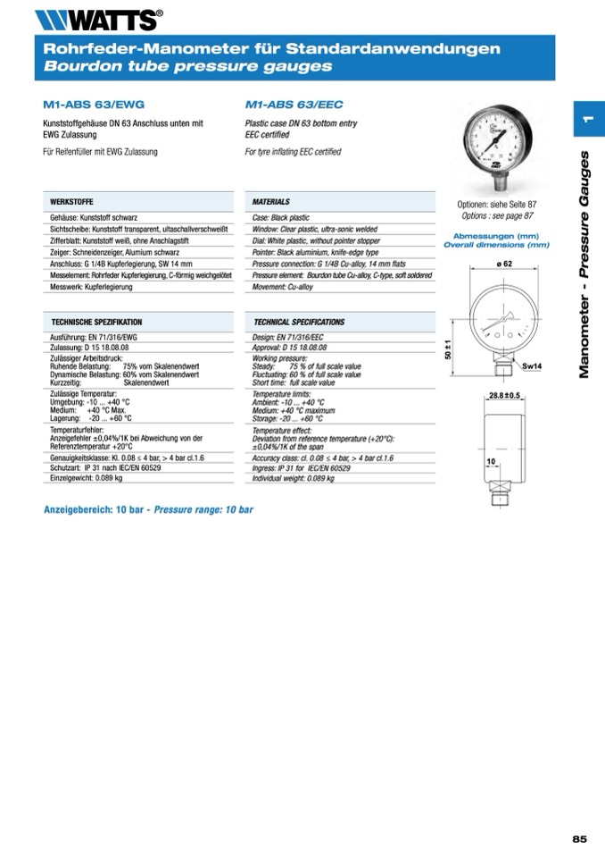 Anzeigebereich: 10 bar - Pressure range: 10 bar