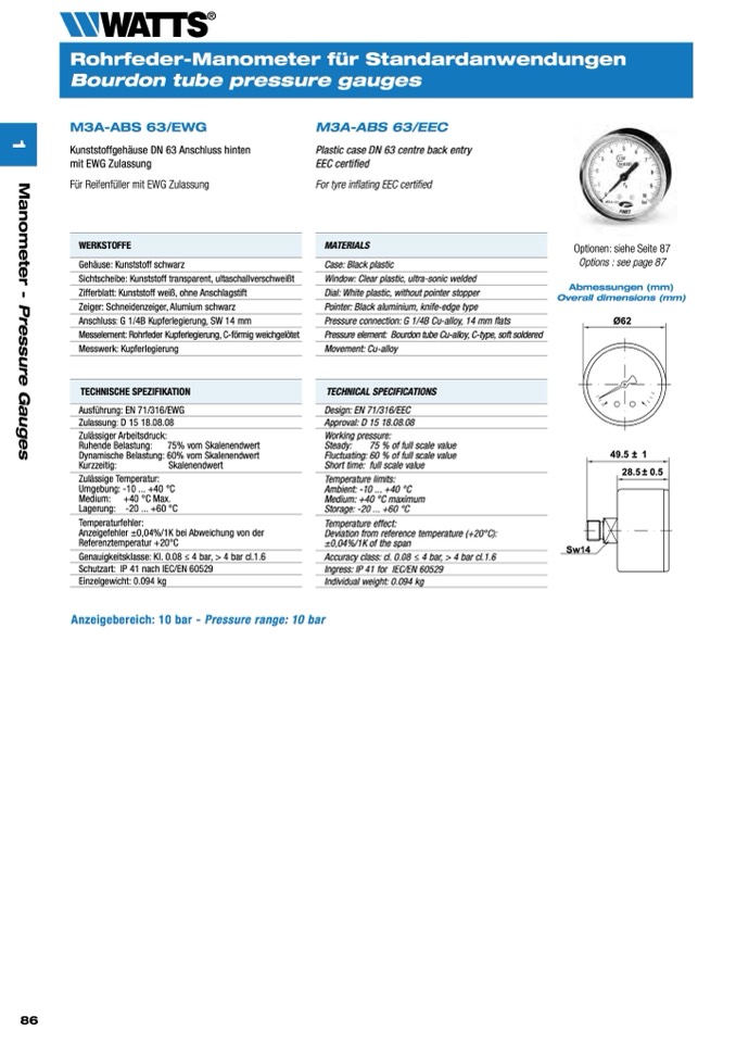Anzeigebereich: 10 bar - Pressure range: 10 bar