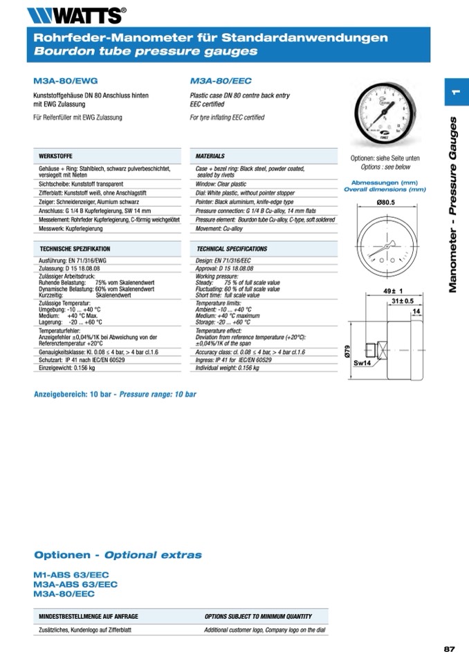 Accuracy class: cl. 0.08 ≤ 4 bar, > 4 bar cl.1.6