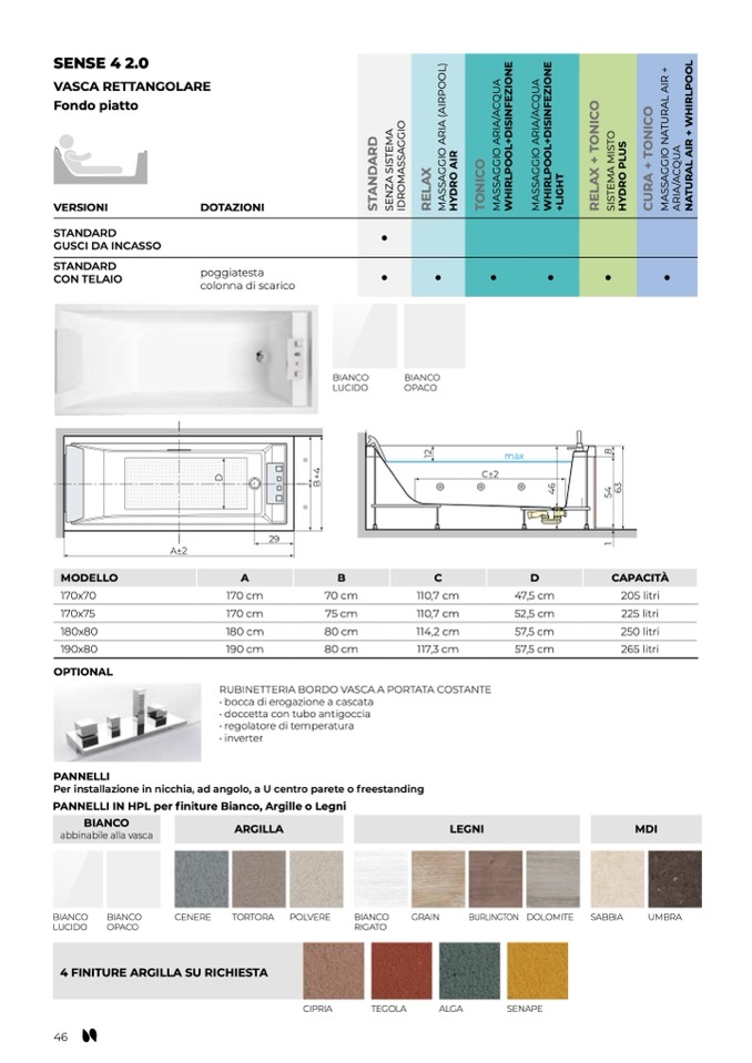 Per installazione in nicchia, ad angolo, a U centro parete o freestanding