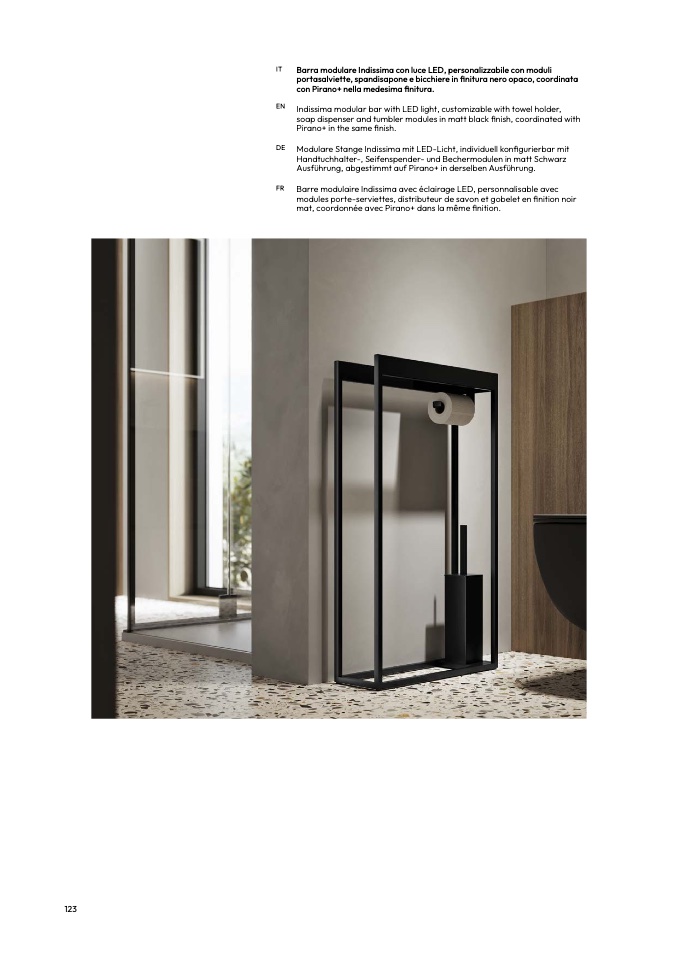 Indissima modular bar with LED light, customizable with towel holder