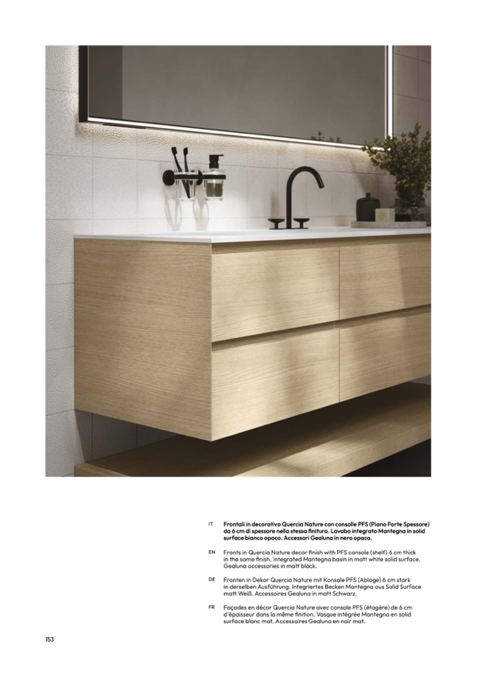 da 6 cm di spessore nella stessa finitura. Lavabo integrato Mantegna in soli