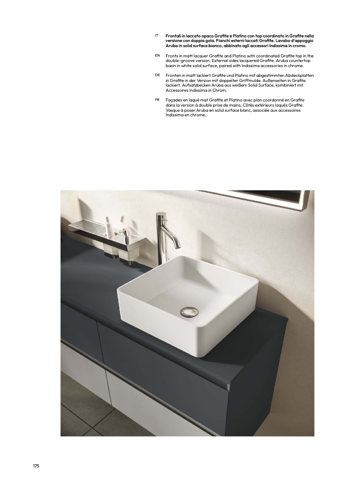 versione con doppia gola. Fianchi esterni laccati Grafite. Lavabo d’appoggi