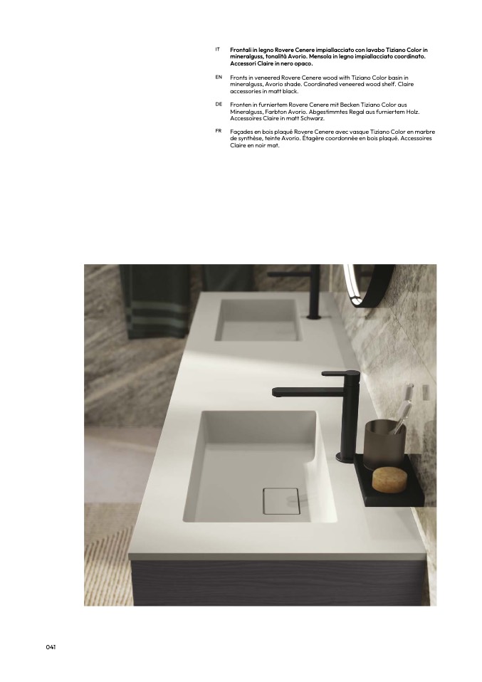 mineralguss, Avorio shade. Coordinated veneered wood shelf. Clair